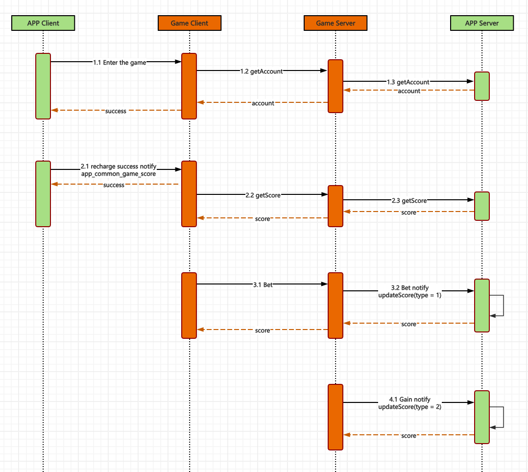 - When entering the game, the game server retrieves the score of a specific user to display it in the game client.